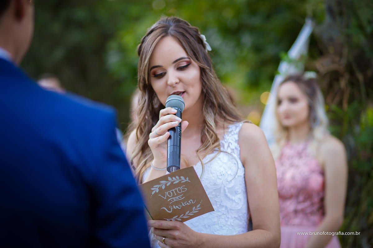 Acho que toda menina tem aquele sonho do casamento incrível, como nos contos de fada, filmes românticos ou historias dos livros, enfim. Esse casal tinham sonhos lindos e historias incríveis juntos, fizeram tudo como manda o figurino e conseguiram realizar tudo com muito amor e leveza. Conhecemos um pouco da historia deles, e posso-lhes afirmar a historia de amor deste casal é pra poucos. E assim tudo aconteceu, a Vivian viveu seu sonho, casou-se no quintal da casa que cresceu, um cenário incrível e cheio de historias!